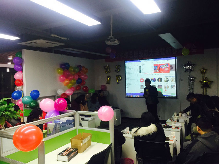從一大早開始,同事們就開始準備今天的活動事宜,每個人都積極參與,將公司裝飾的五彩繽紛、特別喜慶!吹氣球的,將氣球布置到各個角落的,還不停發(fā)表自己的創(chuàng)意的同事們都盡最大可能將活動場地布置得溫馨有氣氛。