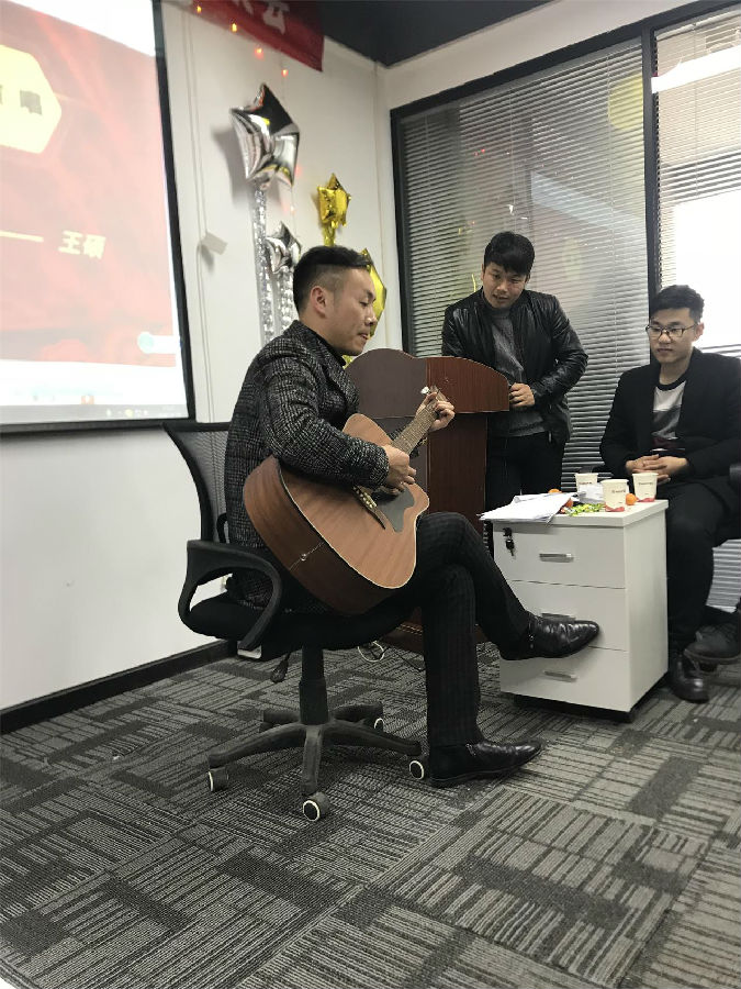 下午在熱烈的氣氛中,我們?nèi)w員工展開了豐富多彩的文藝演出,文藝演出中穿插舉行了“聽曲識歌”和“驛站傳書”的游戲。全體員工積極參與,整個氣氛熱烈歡騰。文藝匯演中,看得出大家最喜歡的節(jié)目是歌唱表演,參與的同事有張杰,左超,王宗汝,等等,極大限度的體現(xiàn)了我公司員工多才多藝的一面。節(jié)目還有人事部小祝表演的“橡皮筋”魔術精彩萬分。不同風格,體現(xiàn)了我們不同的風采,但有一點是共同的:為了公司美好的明天,我們?nèi)σ愿埃ζ床?